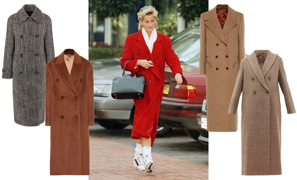 Гигантское двубортное пальто принцессы Дианы спасет этой осенью от холода самых модных